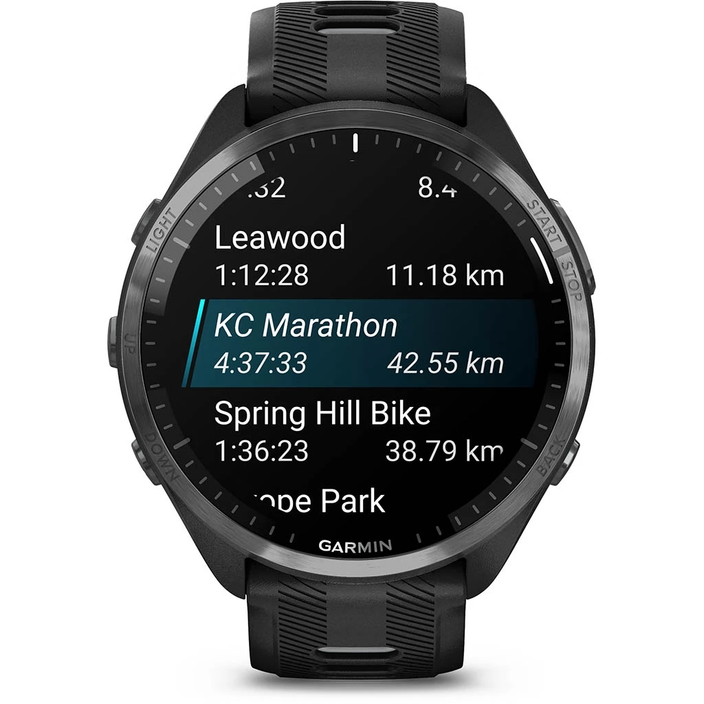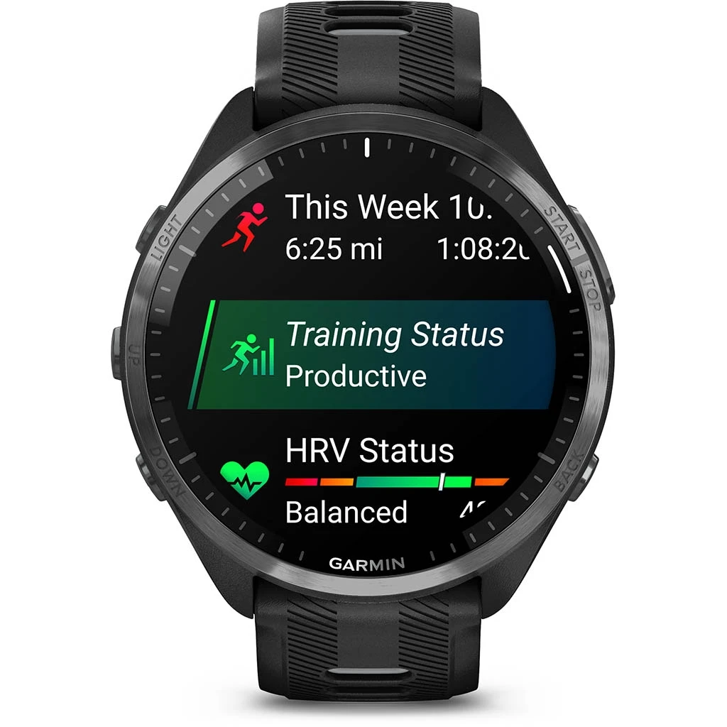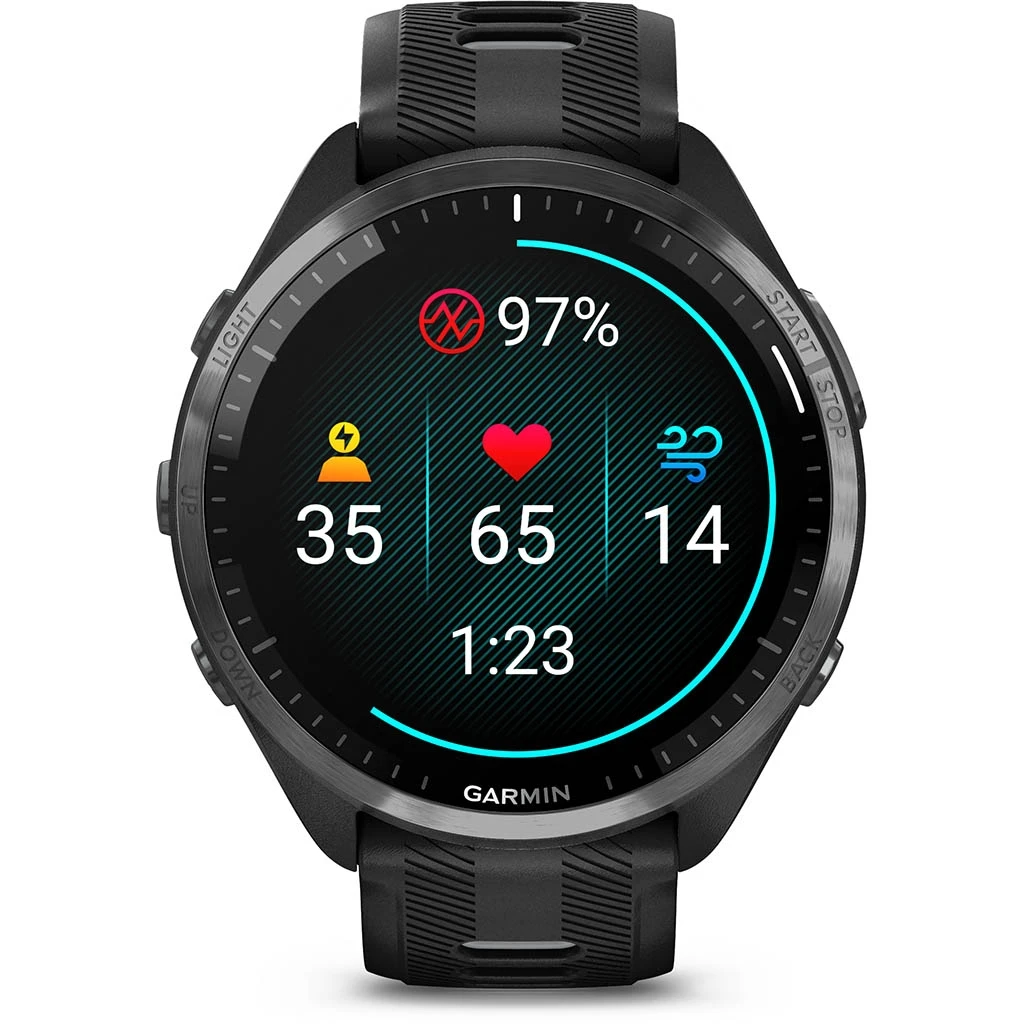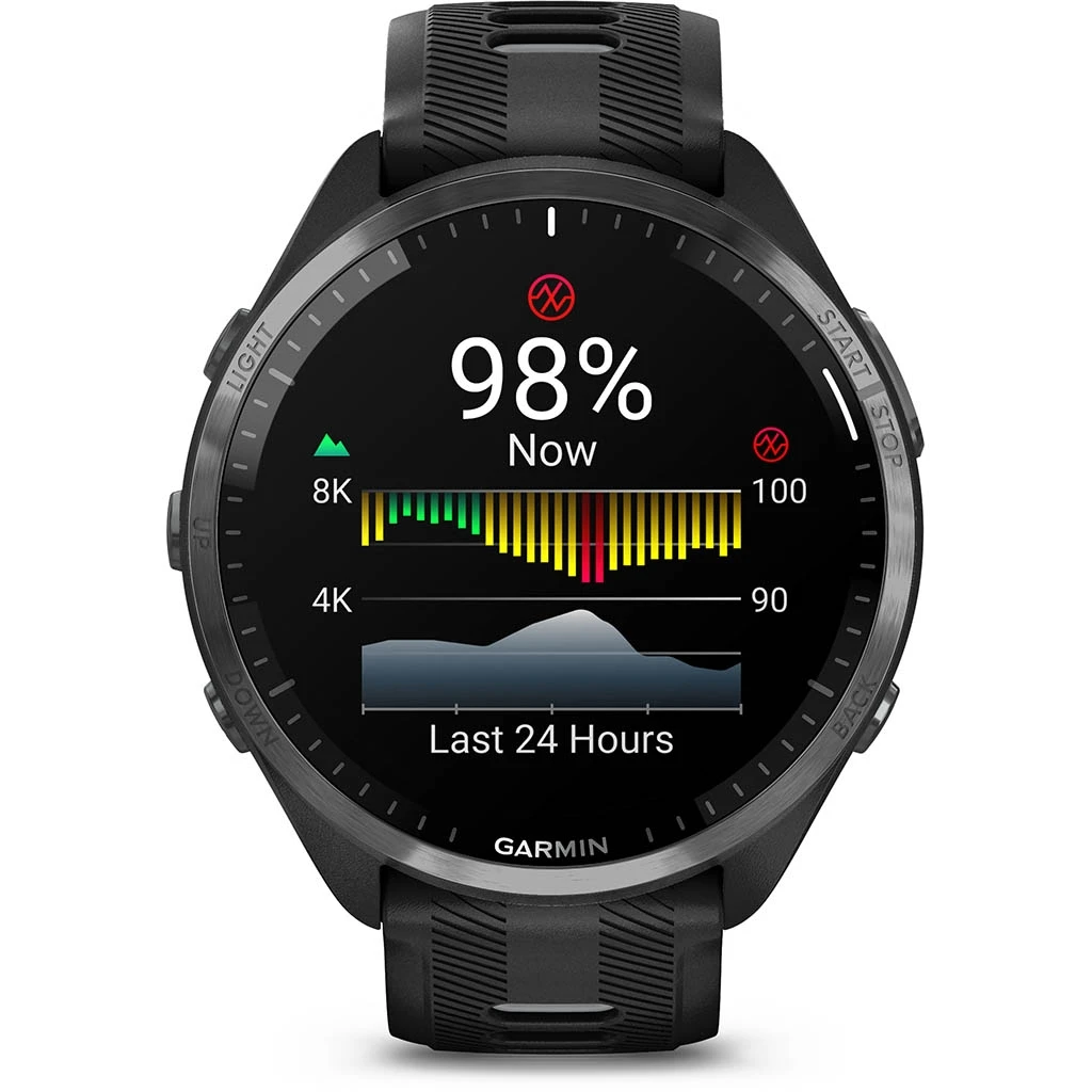 La Forerunner 965 est Ă©quipĂ©e d’une fonctionnalitĂ© unique de puissance en course intĂ©grĂ©e pour suivre en temps rĂ©el la puissance que vous appliquez sur les chemins ou sur la route lorsque vous courez. Elle dispose Ă©galement d’une fonction de ratio de charge qui permet de suivre le rapport entre votre charge sur 7 jours et votre charge aigĂĽe pour mieux gĂ©rer l’augmentation de charge, rester en forme et Ă©viter les blessures.