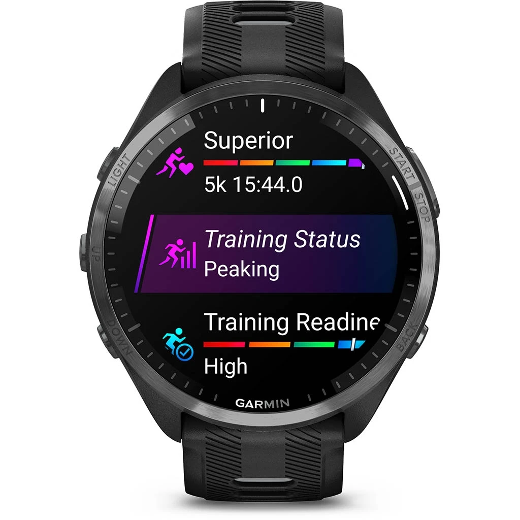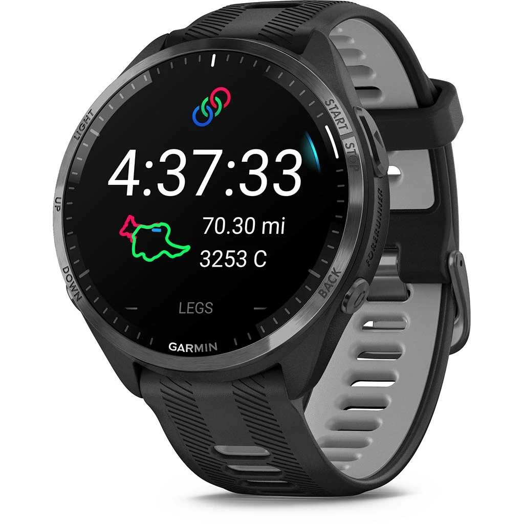 La Forerunner 965 est Ă©galement Ă©quipĂ©e de fonctions multisports pour les triathlètes, permettant de changer de sports Ă l’aide d’un bouton en utilisant les profils prĂ©dĂ©finis pour le triathlon, duathlon, swim/run, ou de personnaliser une activitĂ© en crĂ©ant votre propre enchaĂ®nement de sports intĂ©grĂ©s. Elle Ă©value Ă©galement le statut d’entraĂ®nement et fournit des conseils supplĂ©mentaires pour progresser.