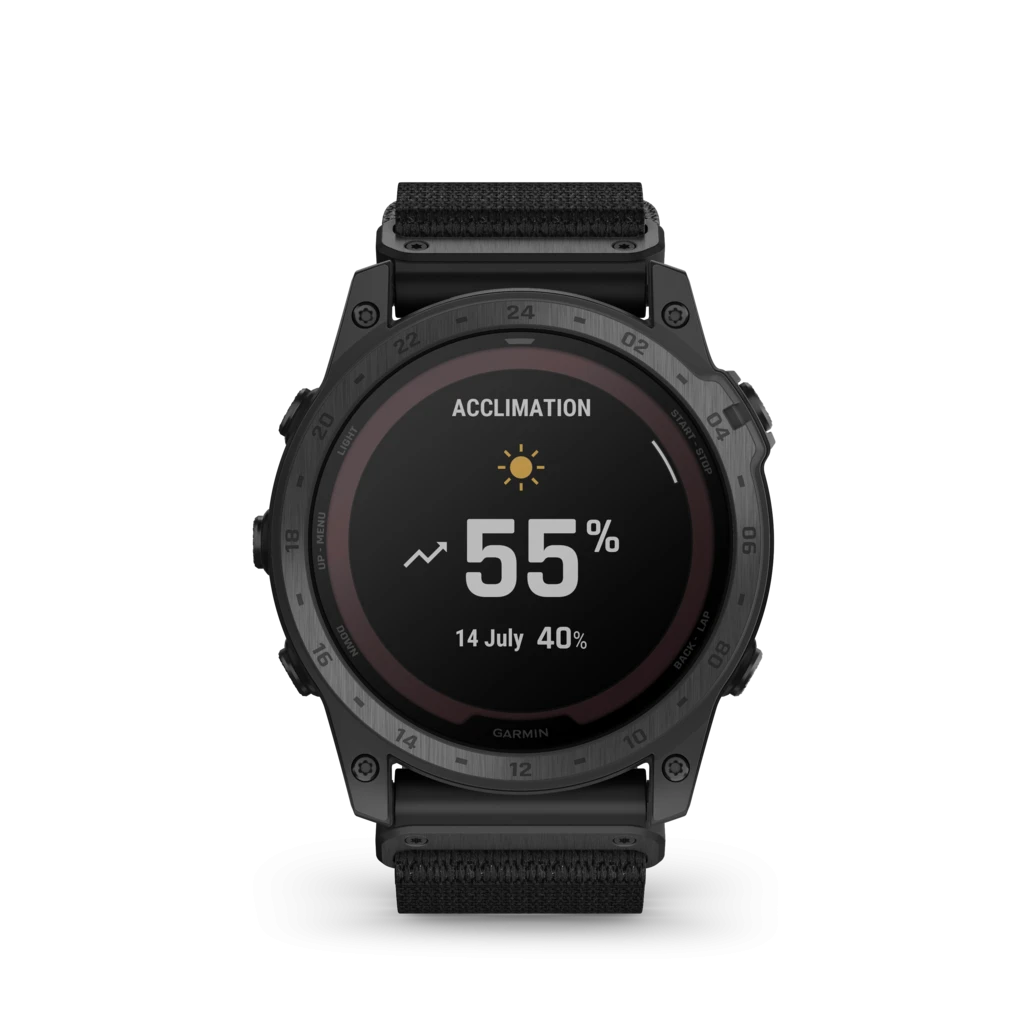 Grâce aux nombreux modes de fonctionnement de la tactix 7 pro, vous ne serez jamais Ă court d’informations. Naviguez avec prĂ©cision dans les endroits les plus reculĂ©s, pilotez grâce aux fonctionnalitĂ©s avioniques, entrainez vous avec les fonctions d’entrainement et du suivi, et suivez vos donnĂ©es de santĂ© et de bien ĂŞtre en temps rĂ©el avec les capteurs ultra prĂ©cis prĂ©sents sur la montre. Avec une autonomie allant jusqu’a 139 jours grâce Ă son chargement solaire, ne mettez plus de barrière Ă vos explorations et n’hasitez plus Ă donner le meilleur de vous mĂŞme. La Garmin Tactix 7 rĂ©pond aux normes militaires amĂ©ricaines.Â