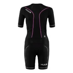 La trifonction présente des manchettes longues pour accroître les performances aérodynamiques et protéger contre les rayons UV. La peau de chamois spécifique respecte la morphologie et optimise le confort.
