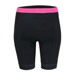 Le short de triathlon pour femme HUUB Tana Tri Short, de couleur noire et rose, a été conçu pour toutes les triathlètes recherchant un cuissard particulièrement adapté à la morphologie féminine et offrant un avantage en terme de performance.