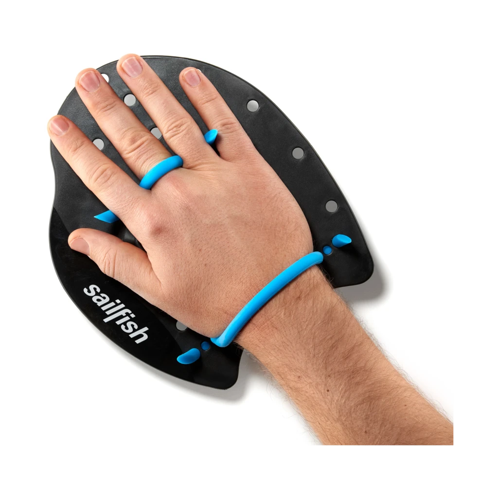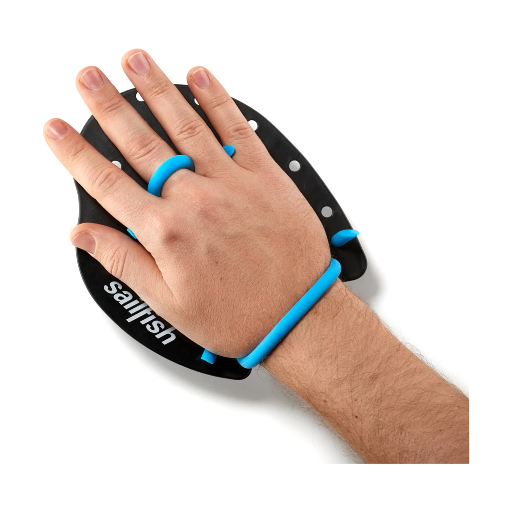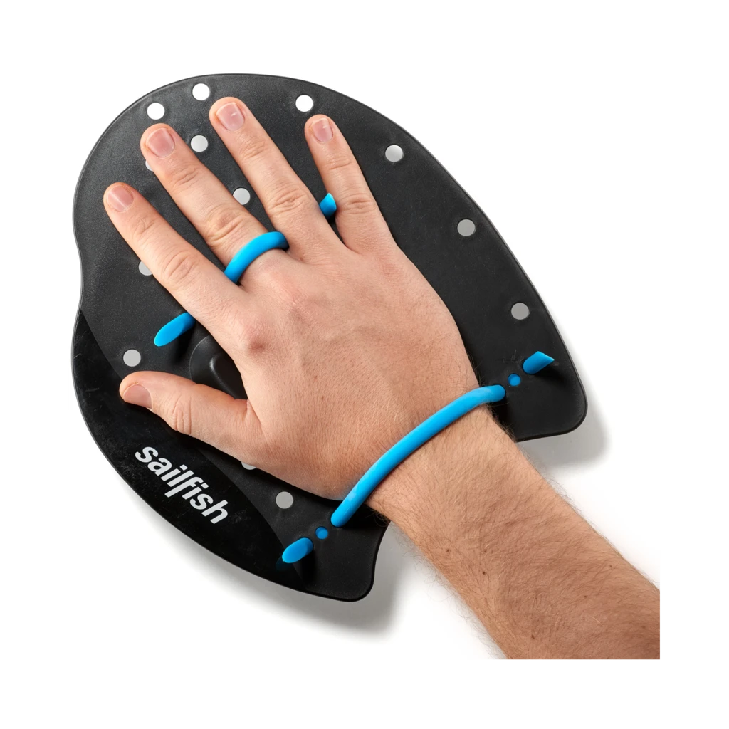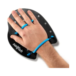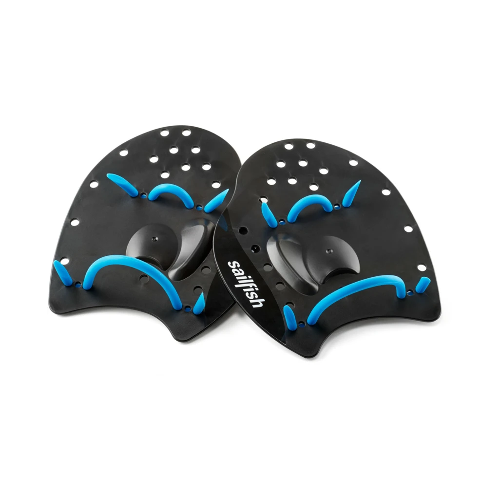 Les plaquettes de natation SAILFISH Flat Paddle, prĂ©sentĂ©es ici en coloris noir et bleu, sont incoutournables pour amĂ©liorer votre puissance dans l’eau.