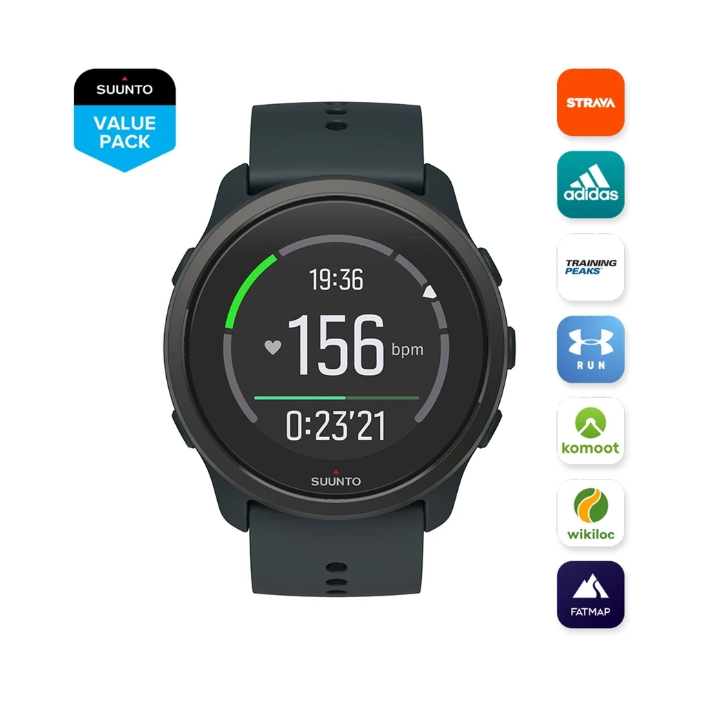 La Suunto 5 Peak dispose d’un moniteur de frĂ©quence cardiaque au poignet pour un suivi de la condition physique en temps rĂ©el, ainsi que d’un suivi de la qualitĂ© du sommeil et des donnĂ©es sur les calories brĂ»lĂ©es. Elle offre Ă©galement des fonctionnalitĂ©s de suivi de la rĂ©cupĂ©ration pour aider les utilisateurs Ă optimiser leur entraĂ®nement en fonction de leur niveau de fatigue et de leur rĂ©cupĂ©ration. La montre permet Ă©galement de dĂ©finir des objectifs de condition physique personnalisĂ©s et de suivre leur progression.