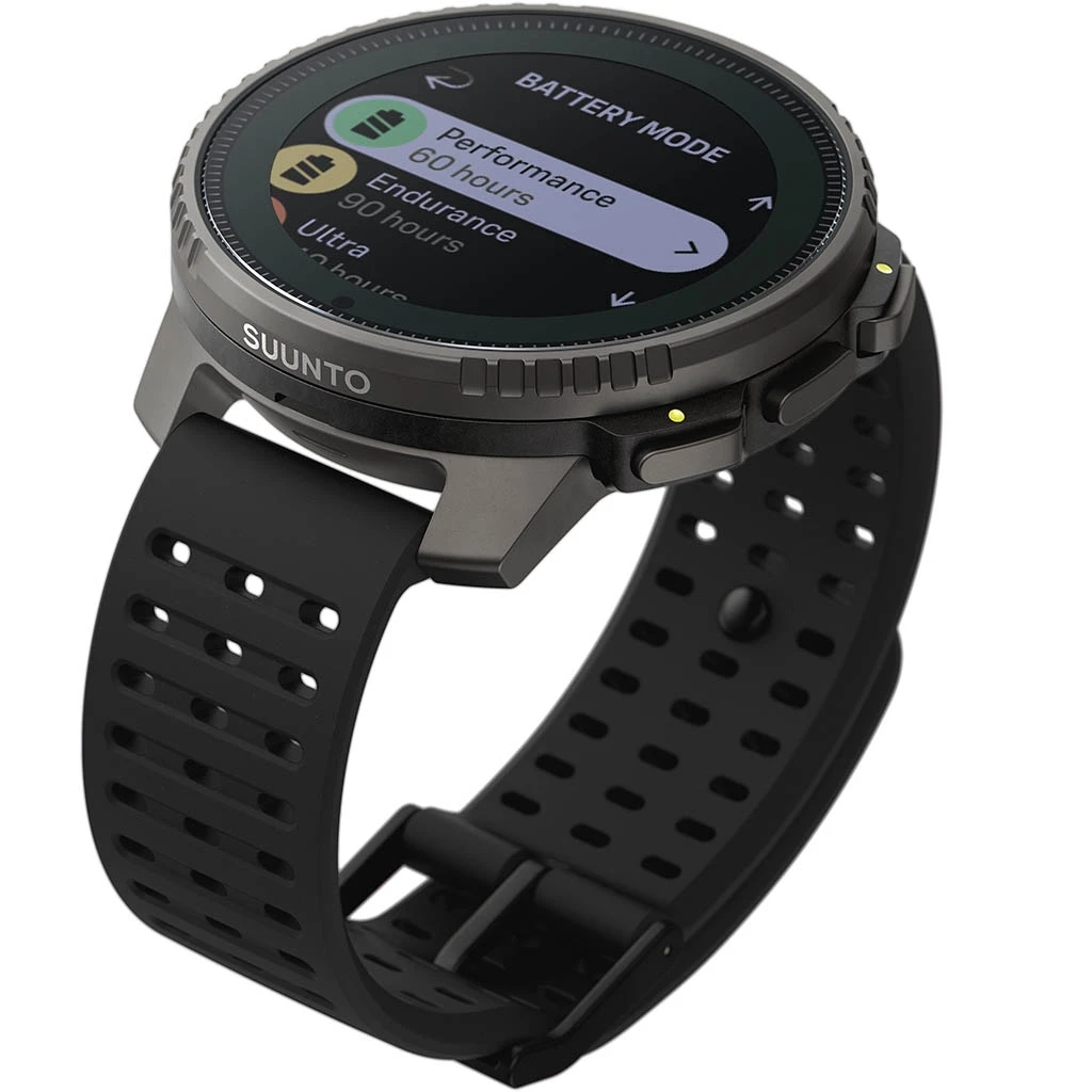 La montre Suunto Vertical dispose d’une durée de vie de la batterie bien supérieure à celle de ses concurrents : 85 heures de suivi des exercices sur le réglage GPS le plus précis avec la version solaire en titane et 60 heures avec la version en acier inoxydable. En usage quotidien, la montre Suunto Vertical vous accompagne jusqu’à 60 jours ; jusqu’à un an sans recharge dans la version solaire en titane !