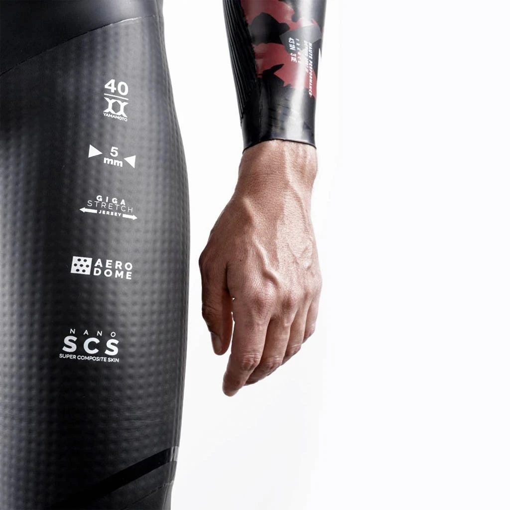 Composée à partir de néoprène Yamamoto #38, #39, #39 AERODOME et #40, dont les épaisseurs varient entre 1.5 et 5 mm selon les différentes parties du corps, elle saura convaincre les triathlètes qui préfèrent nager sans combinaison ou qui se sentent habituellement serrés au niveau des épaules et des bras.
