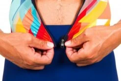 facilement grâce Ă sa coupe typĂ©e gilet Ă©quipĂ©e d’un zip frontal